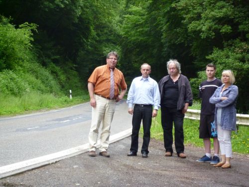 Nach dem Hochwasser war dies jetzt Anlass, erneut gegenüber Landrat Günter Kern, dem in den vorangegangenen Jahren aufgrund von Vergleichszuständen gegenüber anderer Kreisstraßen bezüglich einer Sanierung noch die Hände gebunden waren, vorstellig zu werden. "Der Zustand hat sich aufgrund der längeren Frostperioden in den zurückliegenden beiden Jahren weiter negativ verändert", unterstreicht auch Kamp-Bornhofens Ortsbürgermeister Frank Kalkofen bei einem Ortstermin in Höhe der Burgenauffahrt. Die anwesenden SPD-Rats- und Ausschussmitglieder begrüßen daher Weilands Initiative, die Sanierungsmaßnahme nun gegenüber dem Kreis zu beantragen und wieder ins Gespräch zu bringen. Auch der hiesige Landtagsabgeordnete Roger Lewentz hat diesbezüglich bereits mit Landrat Kontakt aufgenommen. Michael Wendling und Nelly Schneider betonen einmütig: "Auch wenn die Straße beim Kreis sicherlich nicht bereits im kommenden Jahr oberste Priorität haben wird, so ist es wichtig, dass sie zumindest in die Fortschreibung des kommenden Kreisstraßenbauprogramms aufgenommen wird und damit in überschaubarem Zeitraum saniert werden kann."
