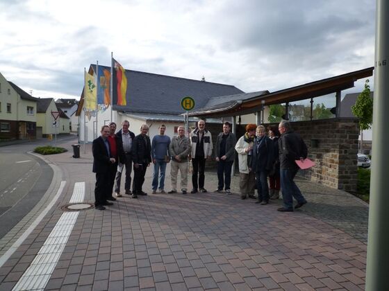 Ortsbürgermeister Dietmar Wohlgemuth (rechts) informierte die Fraktions- und Ausschussmitglieder der SPD Loreley über die weiteren Vorhaben zur Umgestaltung der Ortsmitte von Dachsenhausen, mit dabei (v. l. n. r.) Fraktionssprecher Mike Weiland, Ratsmitglied Lothar Laubach, die Ausschussmitglieder Dieter Roß und Eckhard Lenz, Ratsmitglied Peter Runkel, aus Dachsenhausen Arnold Debusmann und Gernot Haupt, Ratsmitglied Alexander Klein sowie Uschi Klein, Ulrike Wilhelmi und Ute Schmidt von der SPD Dachsenhausen. Hierbei wurden auch die bereits umgesetzten Projekte, wie etwa das Bürgerhaus oder die Bushaltestelle, in Augenschein genommen.