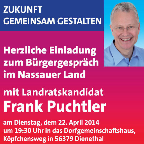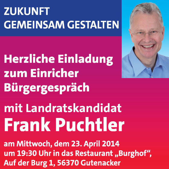 Zur Diskussion über diese Themen lädt Frank Puchtler zum Bürgergespräch