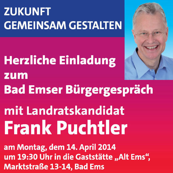 Zur Diskussion über diese Themen lädt Frank Puchtler zum Bürgergespräch