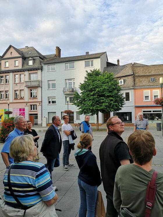 Das dies nicht einfach ist, auf den ersten Blick sind keine sichtbaren Gebäude, Erinnerungstafeln oder ähnliches zu erkennen, wurde den zahlreichen Teilnehmern, unter ihnen auch der Landrat des Rhein-Lahn Kreises, Frank Puchtler, der Bürgermeister der Verbandsgemeinde, Michael Schnatz, Dr. Tanka Machalet, Wahlkreiskandidatin Bundestagswahl und die Stadtbürgermeisterin Annette Wick, schon zu Beginn des Abendspaziergangs deutlich.