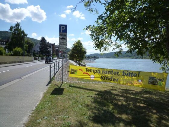 Die beiden Kamp-Bornhofener SPD-Vorsitzenden Andreas Kahl und Mike Weiland folgten jetzt ihrer jährlichen Tradition und leisteten mit dem Aushang zweier Banner als optische Signale an alle Verkehrsteilnehmer zum Schulanfang einen Beitrag zur Erhöhung der Verkehrssicherheit auf Schul- und Kindergartenwegen, wie hier gegenüber des Kindergartens St. Nikolaus.