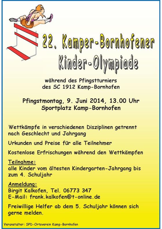 Das Vorstandsteam der SPD Rhein-Lahn um seinen Vorsitzenden Mike Weiland lädt alle Mitglieder, Freunde und Gönner ganz herzlich zum diesjährigen SPD-Sommerfest am Sonntag, 12. Juli 2015, nach Becheln ein. Ab 11.00 Uhr bis in den frühen Abend hinein heißt es am Dorfgemeinschaftshaus, sich einmal Zeit für gute Gespräche in geselliger und familiärer Atmosphäre zu nehmen. Auch der SPD-Landesvorsitzende und hiesige Wahlkreisabgeordnete Roger Lewentz sowie Jörg Denninghoff, MdL, haben ihr Kommen unter anderem zugesagt.